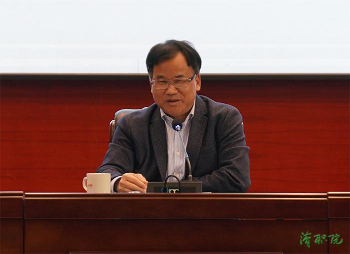 会议由党委书记林海龙作《踔厉奋发 勇毅前行 推动学院高质量发展》主题讲话。讲话内容分为两个部分:一是2022年工作回顾,二是2023年工作安排。林海龙首先肯定了学院2022年工作成绩及工作亮点。一是全面加强党的领导和党的建设。他指出,2022年学院始终坚持以习近平新时代中国特色社会主义思想为指导,以迎接党的二十大和学习宣传贯彻党的二十大精神为主体,坚持把党的领导贯穿办学治校、立德树人全过程各方面,以高质量党建引领高质量发展。二是强化三全育人,落实立德树人的根本任务。推进习近平新时代中国特色社会主义思想“三进”,坚持“三全育人”“五育并举”,构建“三圈层两拓展”的合和文化体系,党建引领的五育并举成绩突出,特别是美育和劳育。三是以“双高”建设为抓手,内涵建设取得新突破。四是坚持科技自立自强,服务国家战略需求和地方重大需求。扎根地方,保持学院专业结构和地方产业布局一致。2022年清职毕业生本地就业创历史新高。2022届全日制学生毕业4666人,留清就业1560人,占33.43%,其中,全日制在校生毕业3730人,留清就业699人,占18.74%。立足清远社会经济发展,为地方经济发展提供智力支持;科技特派员服务基层,为乡村振兴赋能。五是人才强校取得新进展。提升干部能力素质,推进干部队伍年轻化,着重引进博士和硕士,优化人才结构。六是依法治校,推进学院治理能力治理体系现代化。七是坚持人本理念,聚焦急难愁盼问题,做好招生就业工作。2022年招生规模大,报到率达92.3%,创历年最高。八是优化财务管理,开源节流。坚持一保工资,二保运作,三促发展。九是全面贯彻落实总体国家安全观,共筑平安校园。在疫情防控政策调整前的三年时间里,实现了全院零感染。