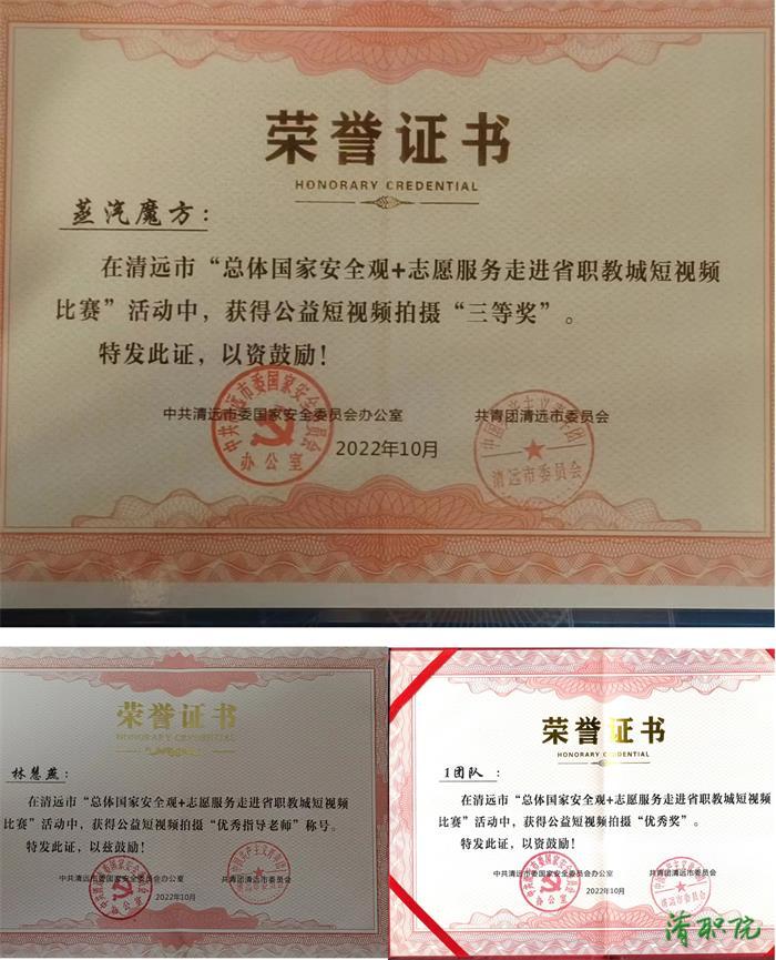 为全面深入学习贯彻党的二十大精神,践行总体国家安 全观,服务高质量发展,丰富本土精神文化生活,清远市委办公室、市委国安办、市委宣传部、团市委、市教育局等单位联合举办2023年清远市“国安家好”文案暨短视频征集大赛。为了提升短视频创作者的创作水平和专业能力,4月4日开展省职教短视频创作爱好者座谈会,信创学院数字媒体技术专业教师周游和获奖学生团队受邀参加座谈会并发言。