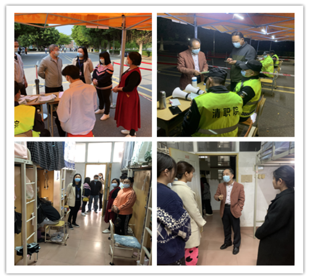 清明假期,护理学院全体值班值守的老师每天分为上午、下午两个值班小组,在学生当中进行疫情防控检查,对班级学生的假期行程情况进行摸排,嘱咐同学要严格遵守学校防疫规定,每天统计核查学生离校和返校人数。同时,老师们深入学生宿舍,关心同学们的学习、生活和思想情况,针对学生关心关注的问题及时做出回应解答。